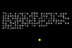 usage: bmp2gbtile?file2.bmp? ... ?-classname ? ?-obj_offset ? This program converts a set of 16/256 color bmp files into GBA sprite/tile data The program takes one or more .bmp files as input and generates a single header file based on all read files. This header will contain a single '1D' binary stream of the tile data along with an enumeration of palette information for each sprite. This program also generates an index structure that will give correct GBA hardware settings for each object. The format of this structure will be the OBJ format This program will perform limited palette mactching using the following algorithm: 1) All bitmaps are loaded into memory 16x16 palettes are cleared 2) bitmaps are split into 2 groups (A,B) where 0 < A <= 16 < B < 256 colors 3) For each group A_i from A from the most colors to the least: a) select a palette that has the lowest palette delta from A_i, expand the palette to support A_i, remap A_i, and continue 4) Try to fit group B into existing palette. If any of the above steps fail, the program will not complete and will return an error Options include: -classname [name] The header file will be generated as a static class with a default classname of . This option can be used to override this name. -lang [name] The language format to use. Currently c or c++ is accepted as input -obj_offset [n] This can be used to set the object offset. This parameter is useful when using bitmapped graphics modes (set obj_offset to 512 in these modes for correct header information -tile This puts the bmp2gbtile program in tile mode. In tile mode, any bmp dimension that is a multiple of 8 is accepted. in this mode, the bitmap is scanned from left to right and 8x8 chunks are outputted -no_attr This surpresses attrN data from the output files -no_palette This surpresses palette data from the output files -palette_file [file] This loads a specially formatted palette constraint file that can be used to manually constrain parts of a palette This is useful when combining the results of multiple Invovations on bmp2gbtile, when it makes sence to do things this way. The format of the palette file is simple, here is an example: # This is a comment # start a palette by stating 'pal' followed by a palette number (0-15) # if using 256 colors, simply use '0' pal 0 # The rest is the colors in 5 bpp, BGR format, the same as the GBA # hardware would expect. The color idx always starts at zero, there # is currently no way to start at a non zero index. Palette data is # assumed hex #Here are two colors (0 and 1): 7FFF 0000
